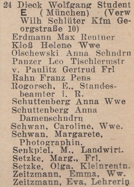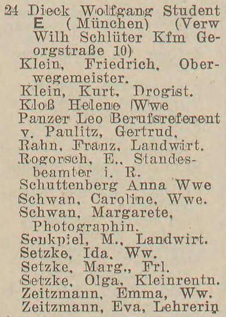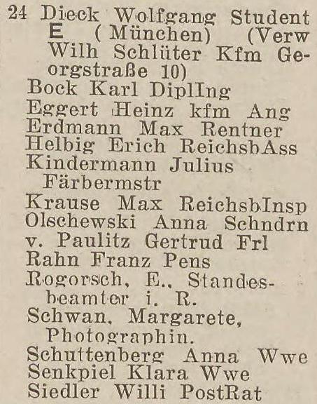 Wolfgang Dieck. Książka adresowa z 1937-1938 roku. Zbiory Piotra Mazurka.