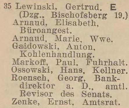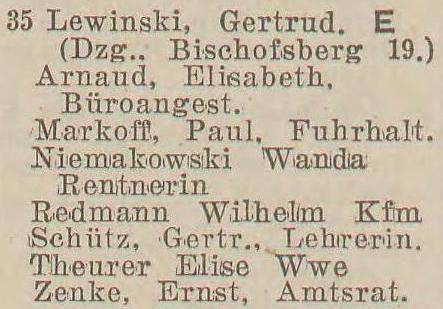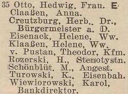 W 1901 roku letników przymowali: Foth (Johannes), Kressin (Auguste), Maul (Eugen), Georgstraße 30 (Olivaer Nachrichten, ).
