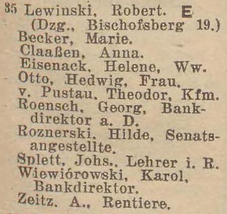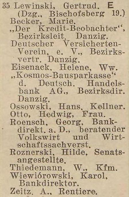 Lenius. Książka adresowa gminy Oliwa z 1916 roku. Zbiory Mirosława Piskorskiego.
