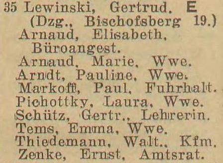 Kressin, Auguste, geb. Plantiko, Ww. Schulz, Helene, Sticerin. Thumann, Georg, Schiffskapitän.
