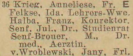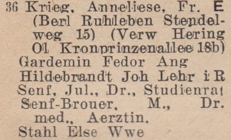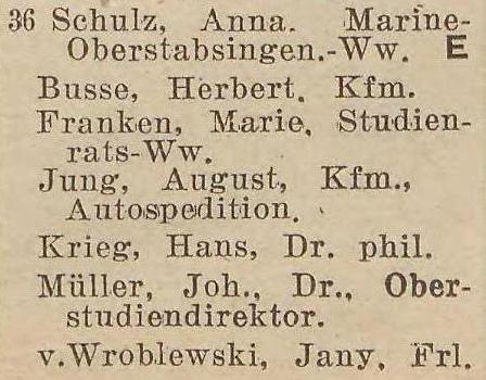 Anneliese Krieg. Książka adresowa z 1936-1937 roku. Zbiory Pomorskiej Biblioteki Cyfrowej.