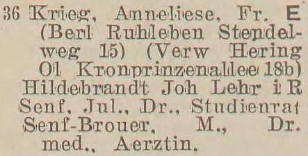 Anneliese Krieg. Książka adresowa z 1935 roku. Zbiory Pomorskiej Biblioteki Cyfrowej.