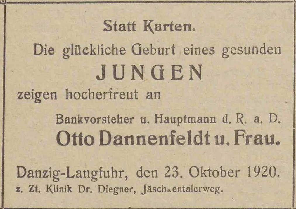 Otto Dannenfeldt. Olivaer Zeintung nr 249 z 22. 10. 1920 r.