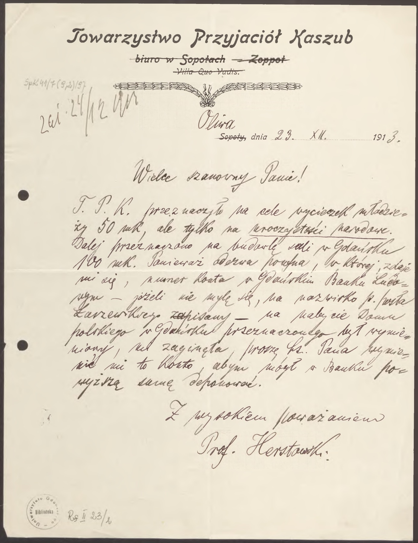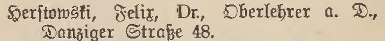 Felix Herstowski, Dr., Oberlehrer a. D., Danziger Straße 48 ().