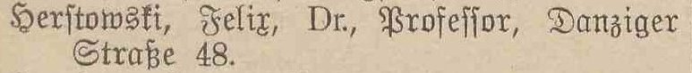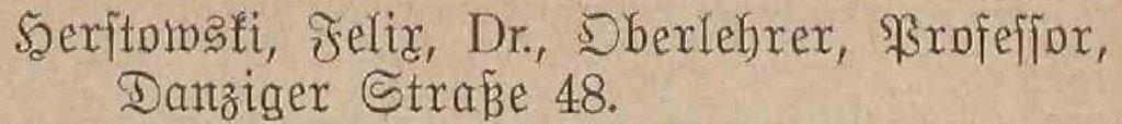 Felix Herstowski, Dr., Oberlehrer, Professor, Danziger Straße 48 ().