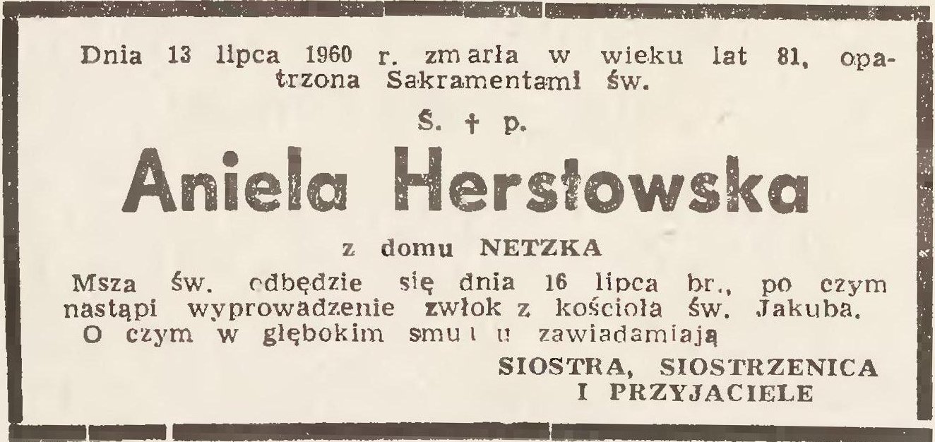Aniela (Angelika) Herstowska z domu (N)Metzka ().