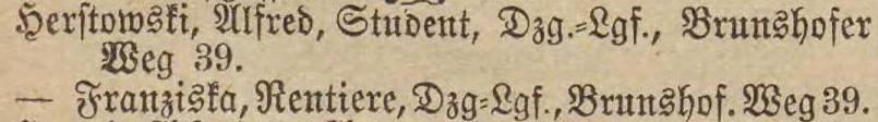 Franziska (Franciszka) Herstowska, Rentiere, Danzig Langfuhr, Brunshofer Weg 39 (Wrzeszcz, Ludwika Waryñskiego),