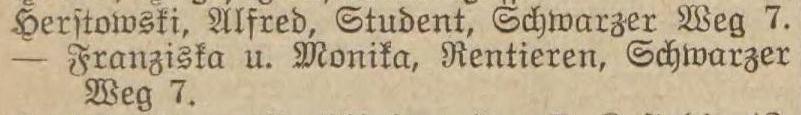 Franziska (Franciszka) Herstowska, Rentiere, Schwarzer Weg 7 (Wrzeszcz, Zator-Przytockiego).