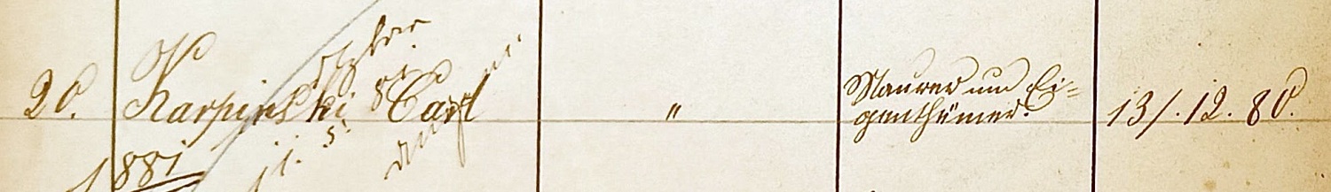 Kamil Karpinski. Baukonholle Oliva IXX. Wpis z 05. 01. 1881. Przekazała Grażyna Niemyjska.