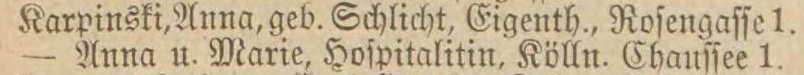Karpinski, Anna, geb. Schlicht, Ww., E, Rosengasse 1 (Kwietna 41). Hausbesitzerin: Rosengasse 1 (Kwietna 41), Rosengasse 7-8 (Kwietna 33-35).