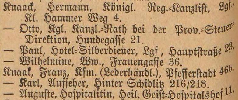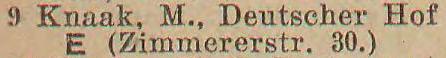 Martin Knaak, Hotelbesitzer, Zimmererstraße 30 (Droszyñskiego).