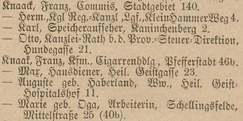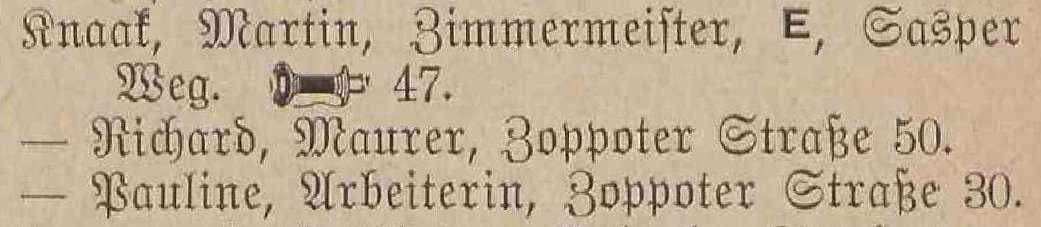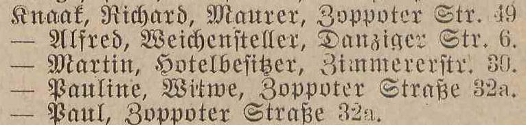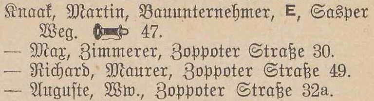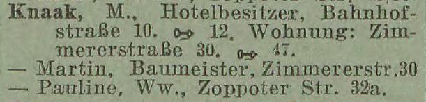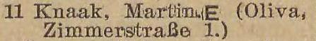 Martin Knaak, Zimmerm., Zoppoter Straße 76 (Grunwaldzka 525). Mieszka przy Zimmererstraße 30 (Droszyñskiego). 1926.