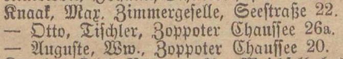 Otto Knaak, Tischler, Zopoter Chaussee 26 (Grunwaldzka 594).