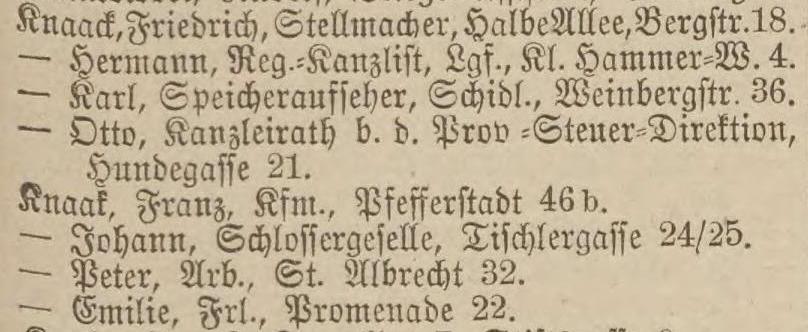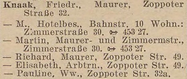 Friedrich Knaack, Maurer, Zopoter Straße 32 (Grunwaldzka 586).