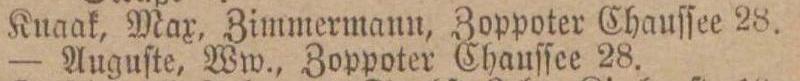 Max Knaak, Zimmermann, Zopoter Chaussee 28 (Grunwaldzka 580?).