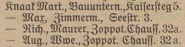 Richard Knaak, Maurerg., Zopoter Chaussee 48 (Grunwaldzka 581).