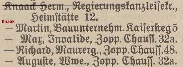 Max Knaak, Invalide, Zopoter Chaussee 32a (Grunwaldzka 586A).