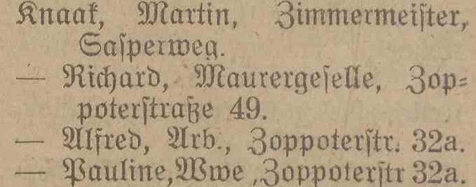 Richard Knaak, Maurer, Zopoter Straße 32 (Grunwaldzka 586).