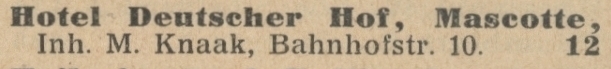 1925 - Hotel Deutscher Hof, Mascotte, Inhaber Martin Knaak, Bahnhofstraße 10.