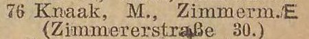 Martin Knaak, Zimmermeister, Zimmererstraße 30 (Droszyñskiego).