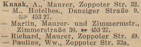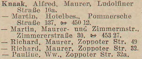 A. Knaack, Maurer, Zopoter Straße 32 (Grunwaldzka 586).