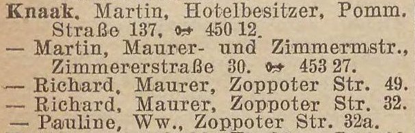 Richard Knaak, Maurer, Zopoter Straße 50 (Grunwaldzka 577).