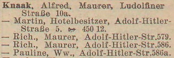 1934 - Martin Knaak, Hotelbesitzer, Adolf-Hitler-Straße 505.