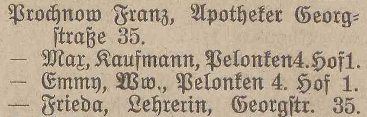 Franz Prochnow, priv. Apotheker, Georgtraße 35 - Obrońców Westerplatte 35.