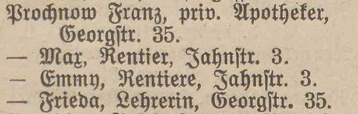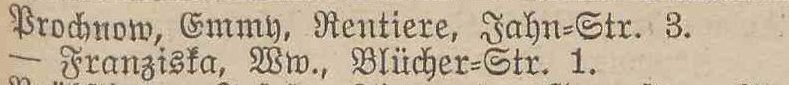 Franziska Prochnow, Blücherstraße 1 (1913) !!!.