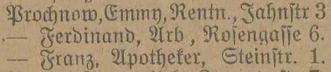 Ferdinand Prochnow, Arbeiter, Rosengasse 6 - Kwietna 6.