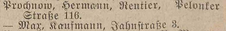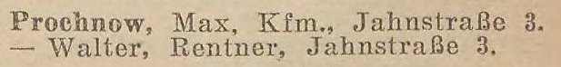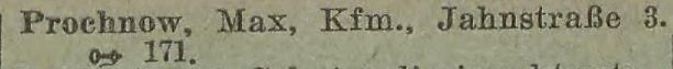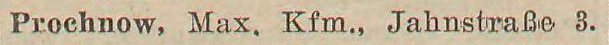 Max Prochnow, Kaufmann, Jahnstraße 3 - Liczmańskiego 3.