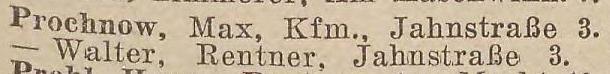 Max Prochnow, Rentier, Jahnstraße 3 - Liczmańskiego 3.