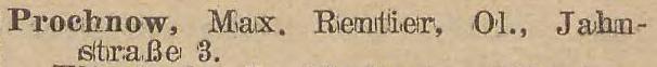 Max Prochnow, Rentier, Vertr., Jahnstraße 3 - Liczmańskiego 3.