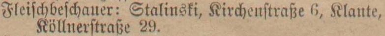 Fleischbeschauer: Stalinski, Kirchenstraße 6, Klante, Köllnerstraße 29.