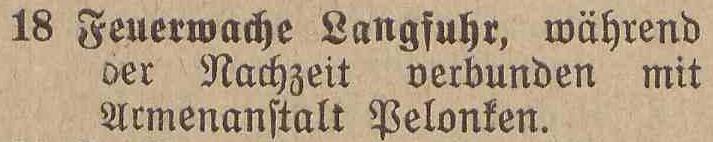 Tel. nr 18. Feuerwache Langfuhr, während der Nachzeit verbunden mit Armenanstalt Pelonken.