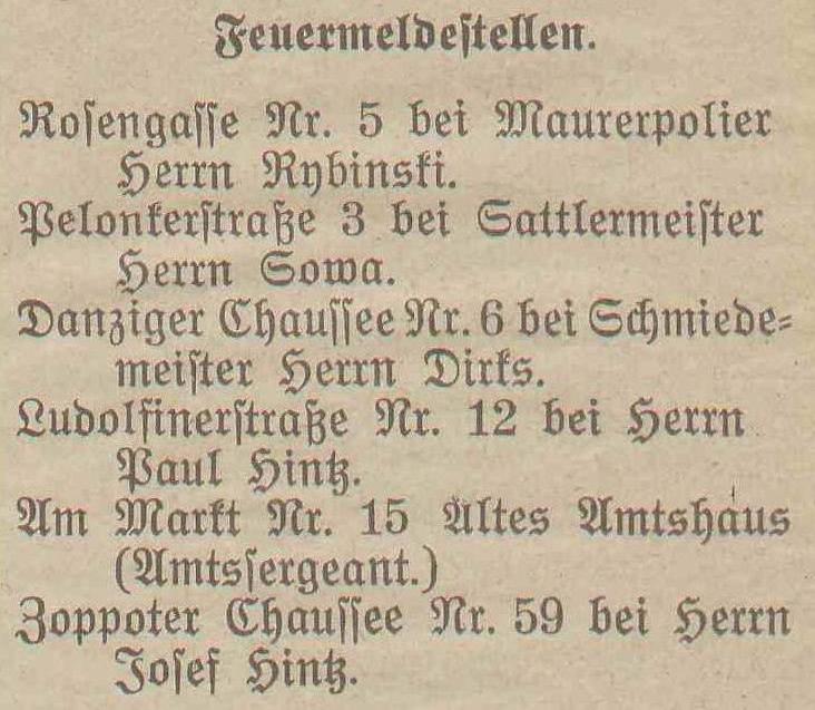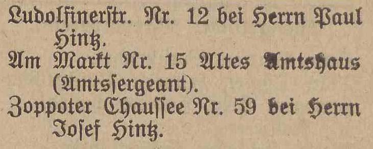 | Hinz | Zoppoter Chaussee 29, Ludolfiner Straße 23 | 1913, 1920-1921 |