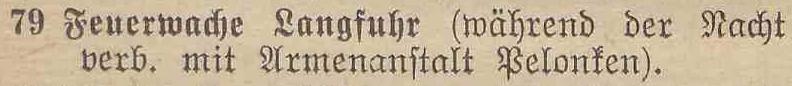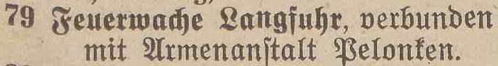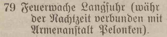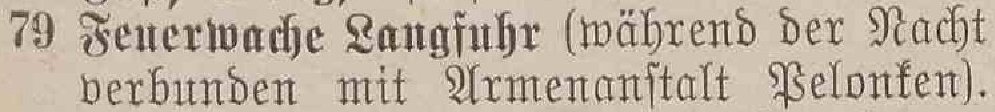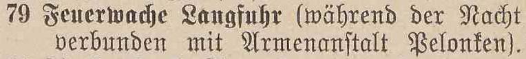 Tel. nr 79. Feuerwache Langfuhr (währ der Nachtzeit verbunden mit Armenanstalt Pelonken).