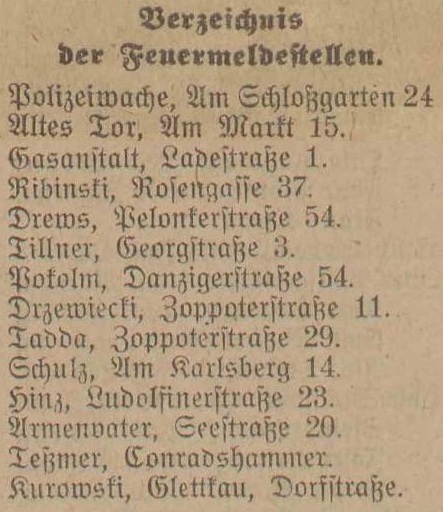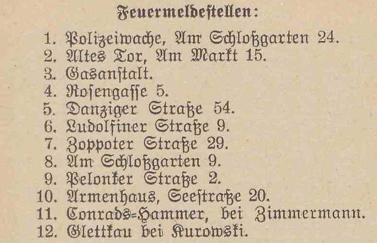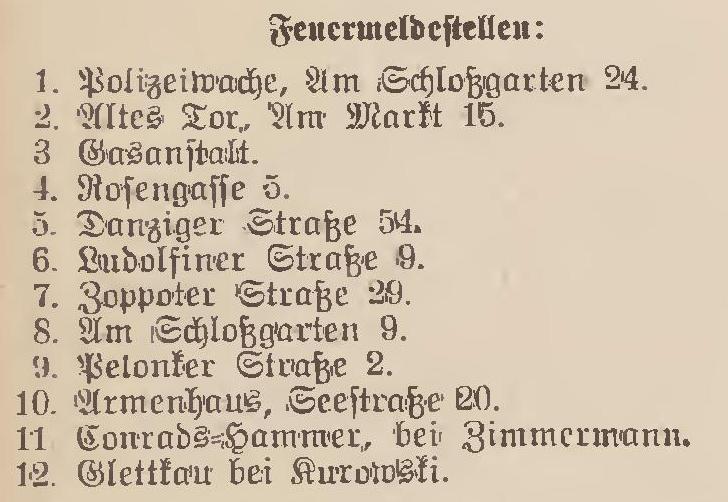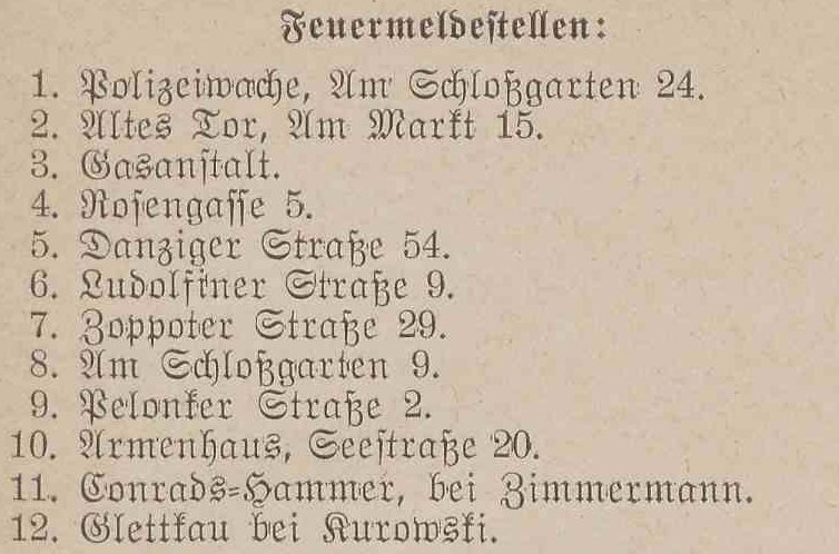 Tel. nr 79. Feuerwache Langfuhr (während der Nacht verbunden mit Armenanstalt Pelonken).