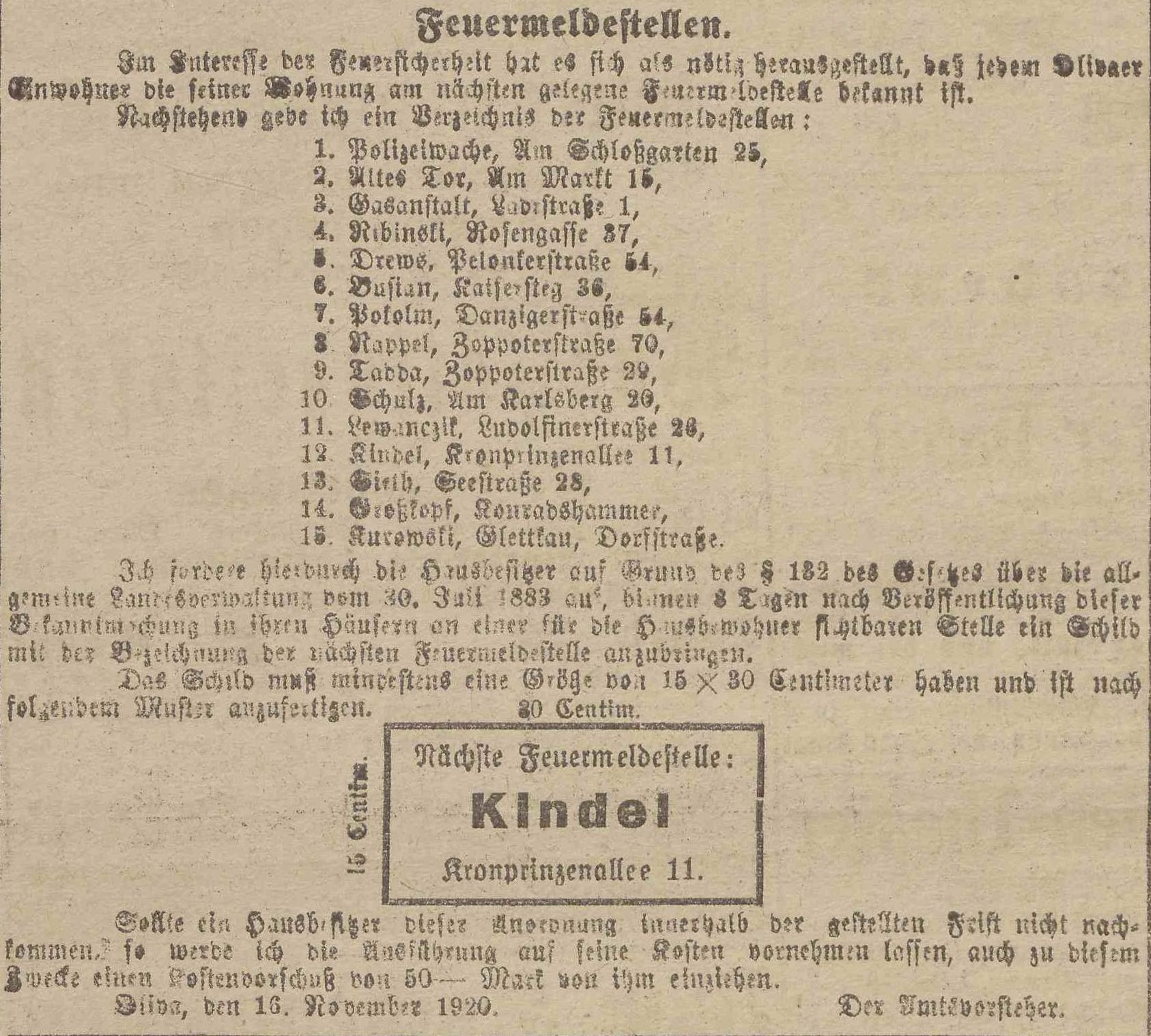 Oliva, den 16. November 1920. Der Amtsvorsteher.