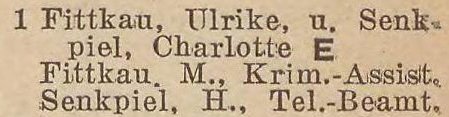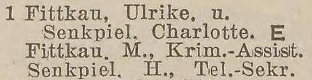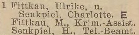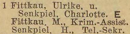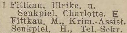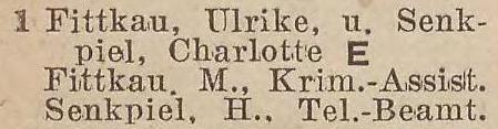 Ulrike Fitkkau. Charlotte Senkpiel. Książka adresowa z 1928 r. Zbiory Pomorskiej Biblioteki Cyfrowej.