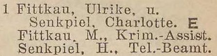 Ulrike Fitkkau. Charlotte Senkpiel. Książka adresowa z 1926 r. Zbiory Pomorskiej Biblioteki Cyfrowej.