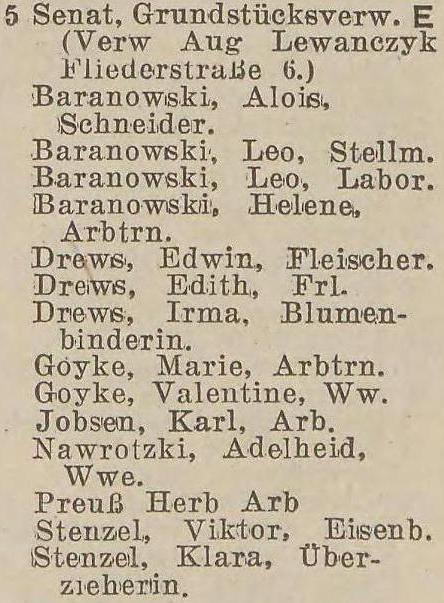 Leon Baranowski wg. księgi adresowej z 1920-1921 roku mieszkał przy Ludolfinerstraße 17 (Czyżewskiego).