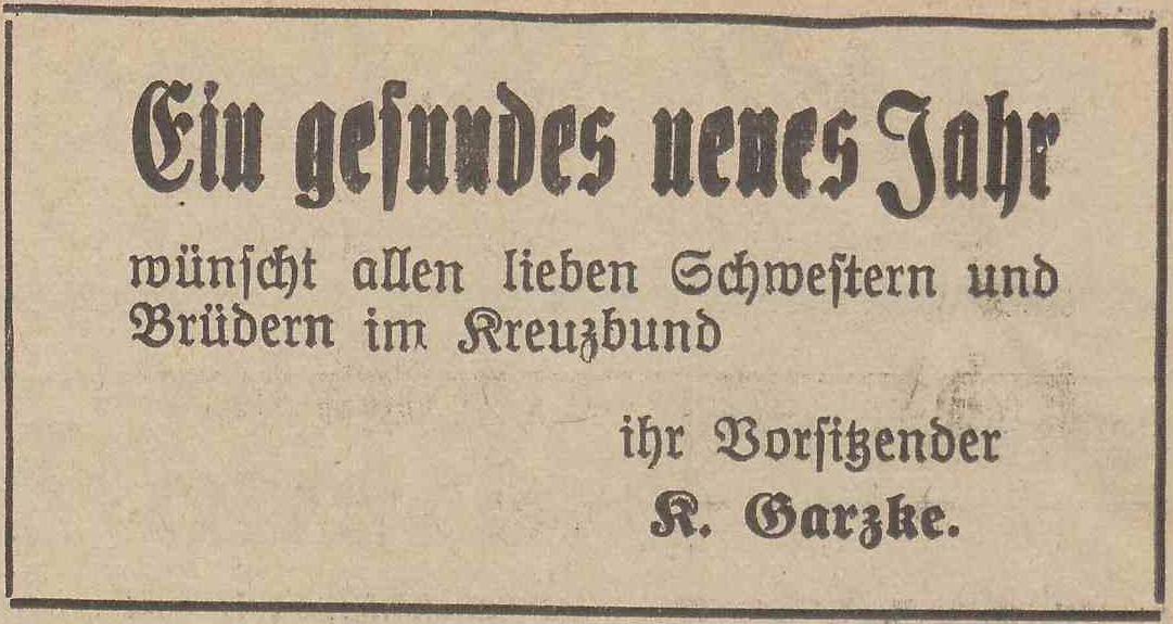 Karl Garzke. Podziękowania noworoczne, Olivaer Zeitung nr 305 z 31. 12. 1931.