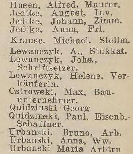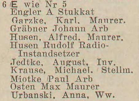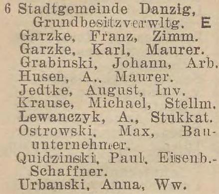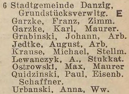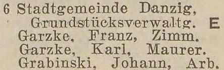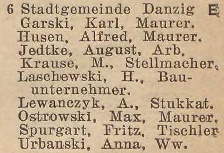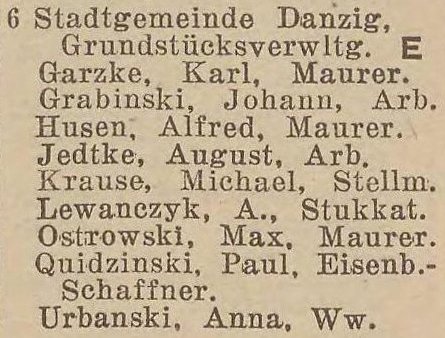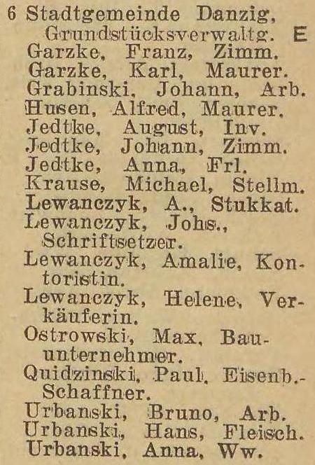 Jak podają książki adresowe w latach 1933-1935 był opiekunem (Verwarter) domu nr 5 przy ul. Fliederstraße (Pelplińska).