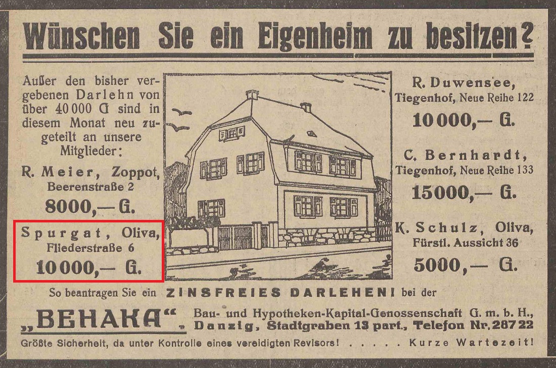 Fritz Spurgat. Olivaer Zeintung nr 21 z 26. 01. 1930 r.