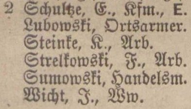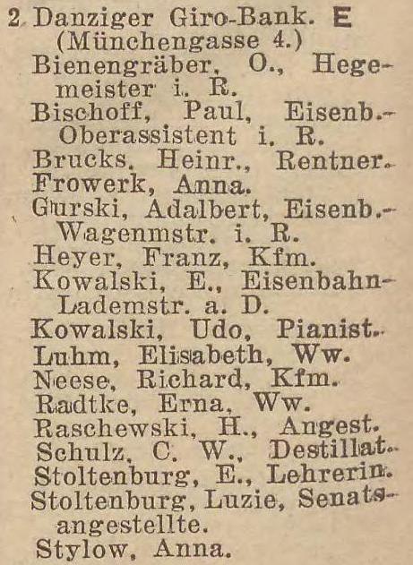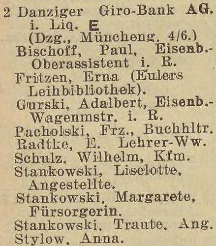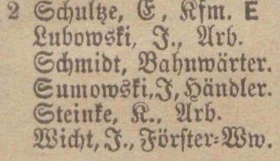 Schultze, E., Commis, * (Zoppoter Chaussee 1).