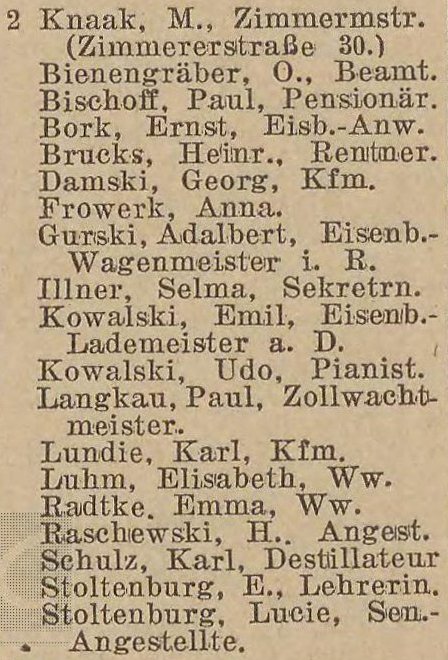 Martin Knaak. Książka adresowa gminy Oliwa z 1916 roku. Zbiory Mirosława Piskorskiego.