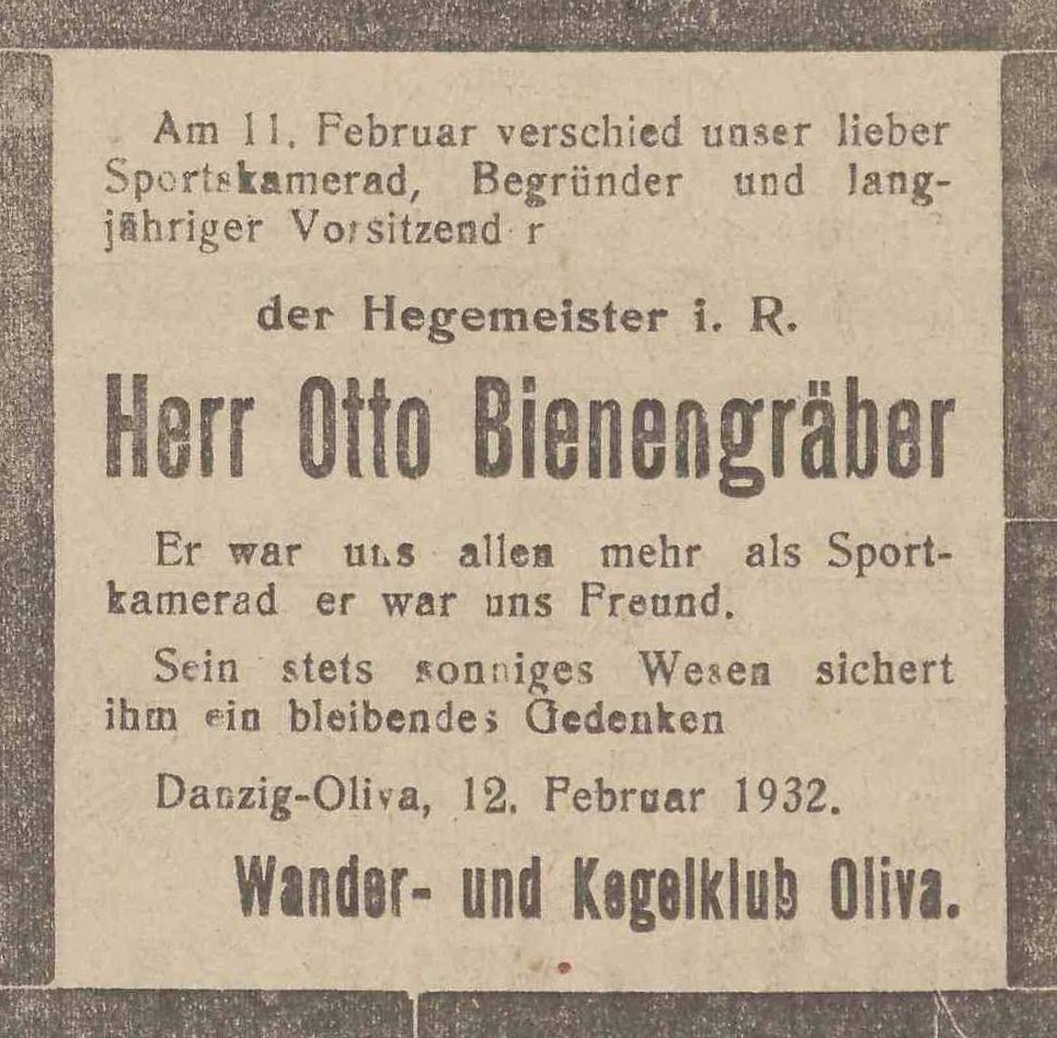 Otto Bienengräber. Danzig-Olivaer Zeintung nr 36 z 12. 02. 1932 r.