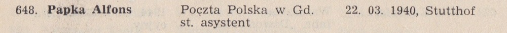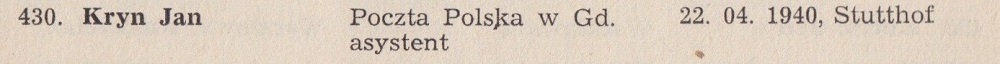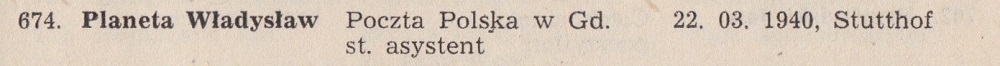 Zamordowany w obozie koncentracyjnym Stuffhof w dniu 22.3.1940 r.