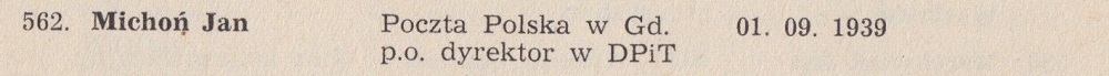 Obrońca Poczty Polskiej w Gdańsku. Kancelista PKP.